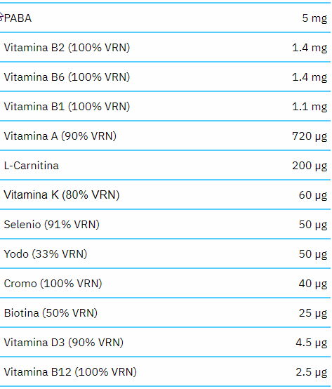 No superar la dosis diaria expresamente recomendada. Los complementos alimenticios no deben utilizarse como sustitutos de una dieta equilibrada. Conservar en lugar fresco y seco, fuera de alcance de los niños más pequeños.